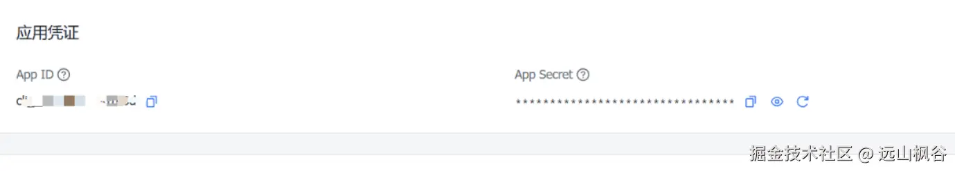 - 在“应用凭证”中获取“App ID”和“App Secret”;