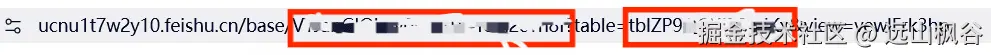 - 随后创建多维表格,表格地址中(第一个是表格token,第二个是表格id)此时看到的url中应该包含“base字段”,如下图所示:务必确保url开头包含base。如果你的不是base,而是 wiki ,说明创建的是知识库表格