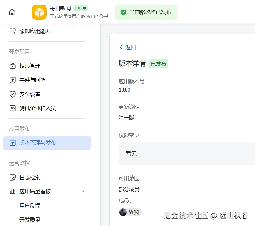 - 进入飞书开放平台(open.feishu.cn),点击右上角开发者后台,创建“企业自建应用”;