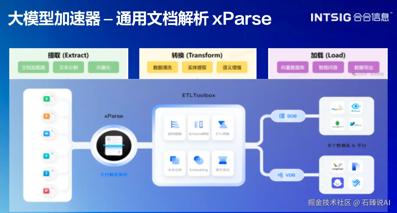 - 技术产品层:文档识别、图像处理、大模型加速器(xParse)