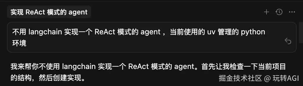 observation = self._execute_tool(tool_name, params) if verbose: print(f"🔧 执行工具: {tool_name}") print(f"📋 参数: {params}") print(f"👁️ 观察结果: {observation}") # 添加观察结果到对话历史 messages.append({ "role": "user", "content": f"Observation: {observation}" })
