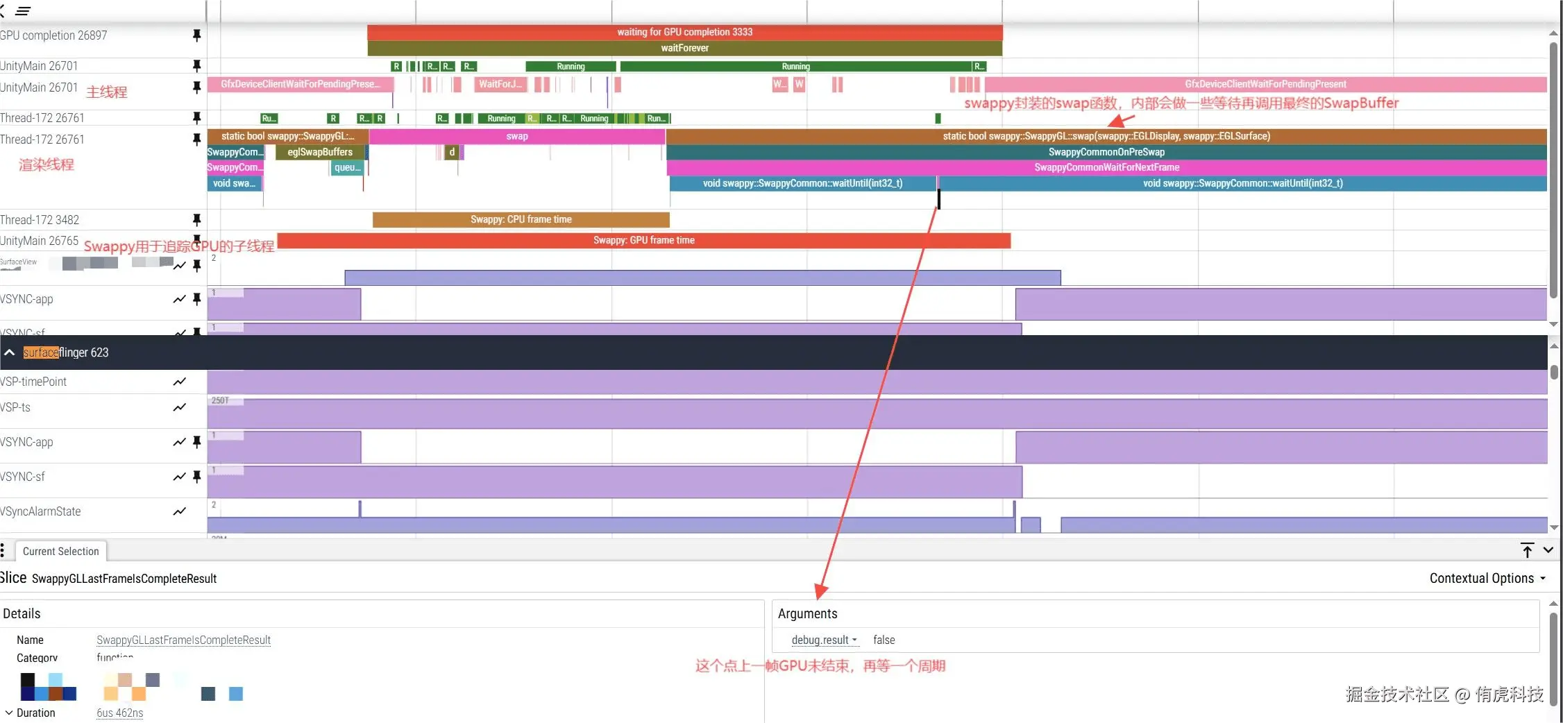 Hook了Swappy中的一些函数,将其标注到了Perfetto中以观察其运行过程: