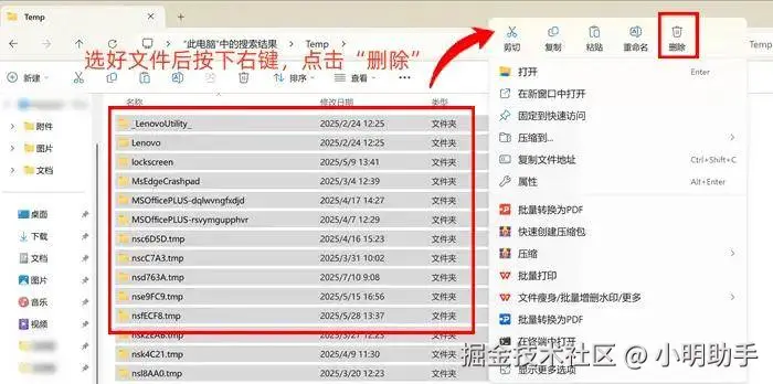 打开C盘里面的临时文件夹,我们会发现,电脑在不知不觉间,已经存下了不少的数据碎片。C盘哪些文件可以删除?电脑C盘太满了,如何清理?临时文件夹也能作为C盘清理的“战场”。删除临时文件的方法也不难,可参考下面操作: