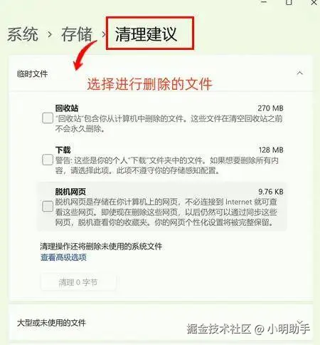 步骤1: 在电脑设置中搜索“清理建议”,在存储页面中下拉找到“清理建议”;