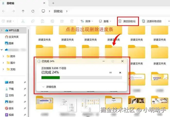 步骤2: 确认里面的文件都可删除后,点击“清空回收站”。