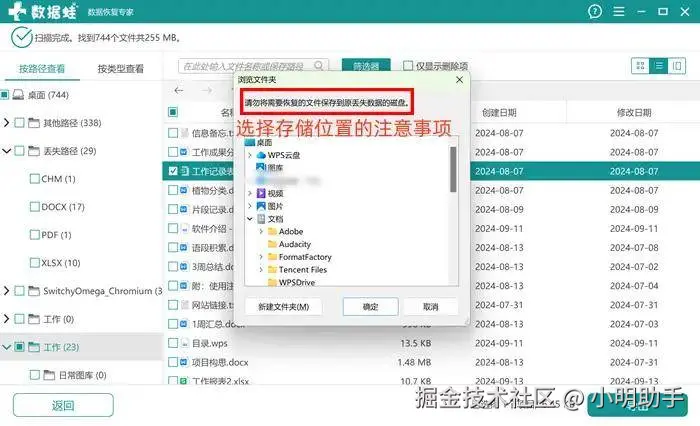 第2步: 完成扫描后,该软件会将可恢复文件都显示在指定的位置。我们可以选择自己需要恢复的文件并进行勾选,完成勾选后点击【导出】,让文件恢复存储到其他的电脑位置(需要在【浏览文件夹】中进行选择)。