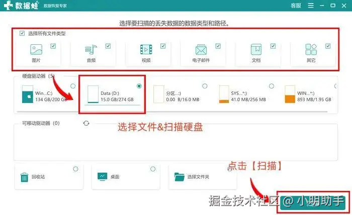 硬盘格式化后能恢复数据吗?该软件支持扫描的存储位置相当丰富,不仅可以扫描电脑硬盘,也可以扫描连接电脑的外部储存设备。不小心格式化了硬盘怎么恢复数据?下面为该软件的简单使用步骤介绍: