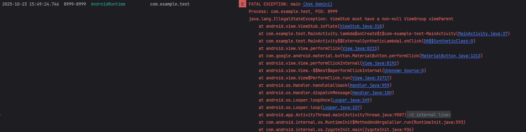 mLayoutResource != 0)- 注意事项:如果 ViewStub 还没有被添加到视图树中就调用
