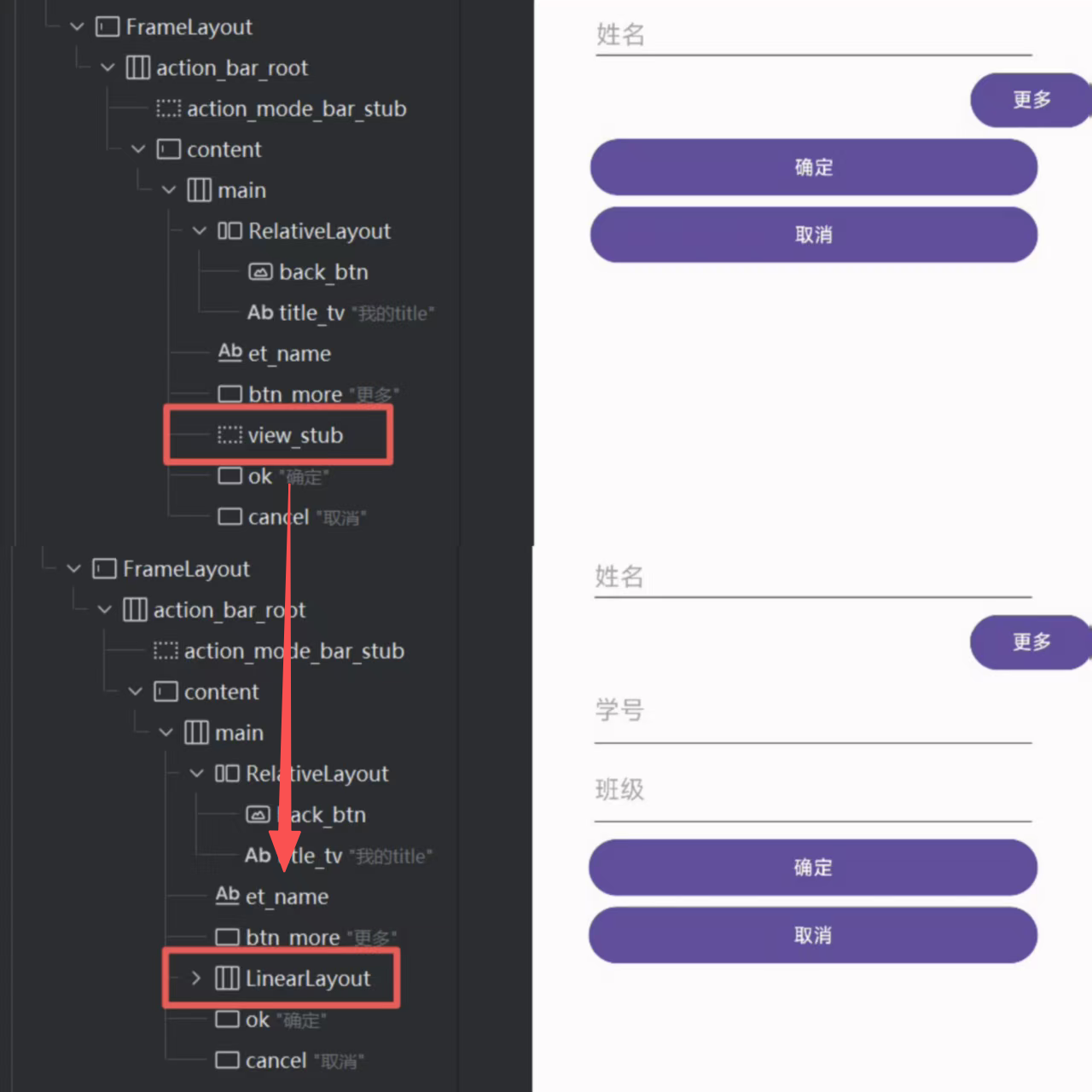 android:id="@+id/view_stub"