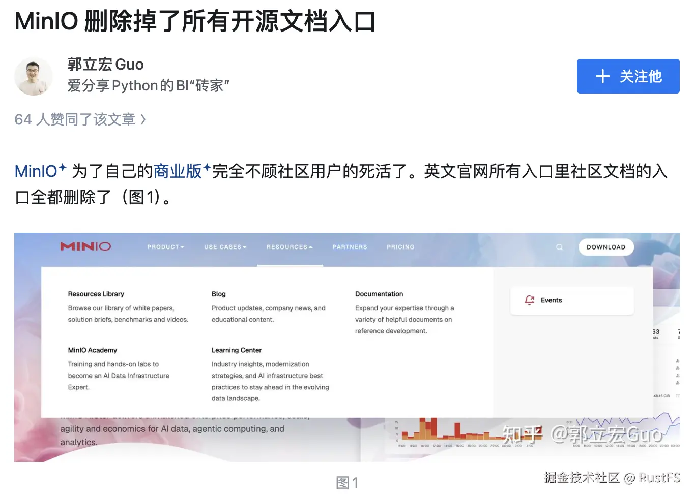 当然,除了这些,MinIO 还把社区版的文档从官网入口做了删除。关于这个,在知乎上已经有帖子: