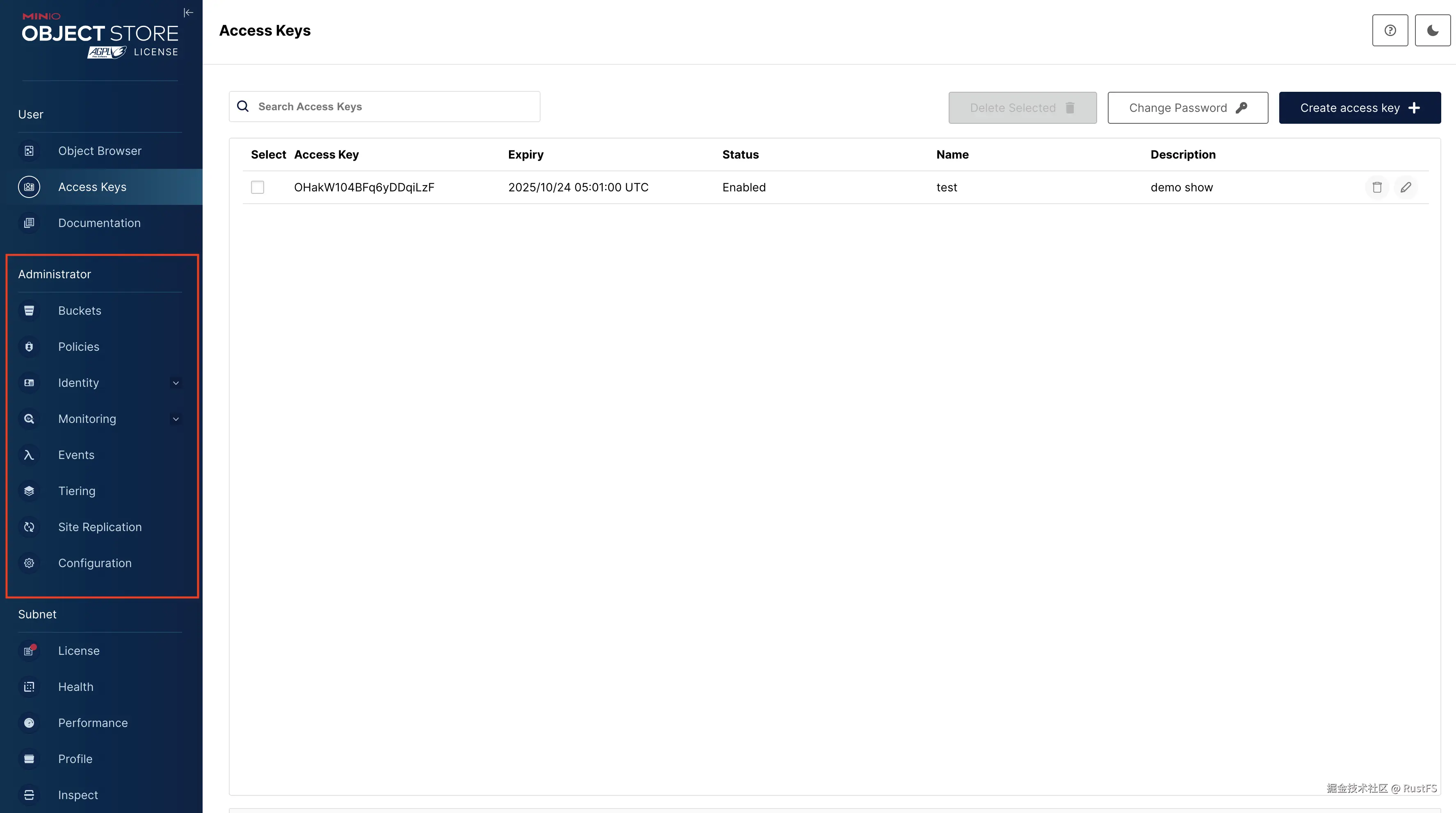 注意 :最后一个 admin console 功能可用的版本为 2025-04-22T22-12-26Z。
