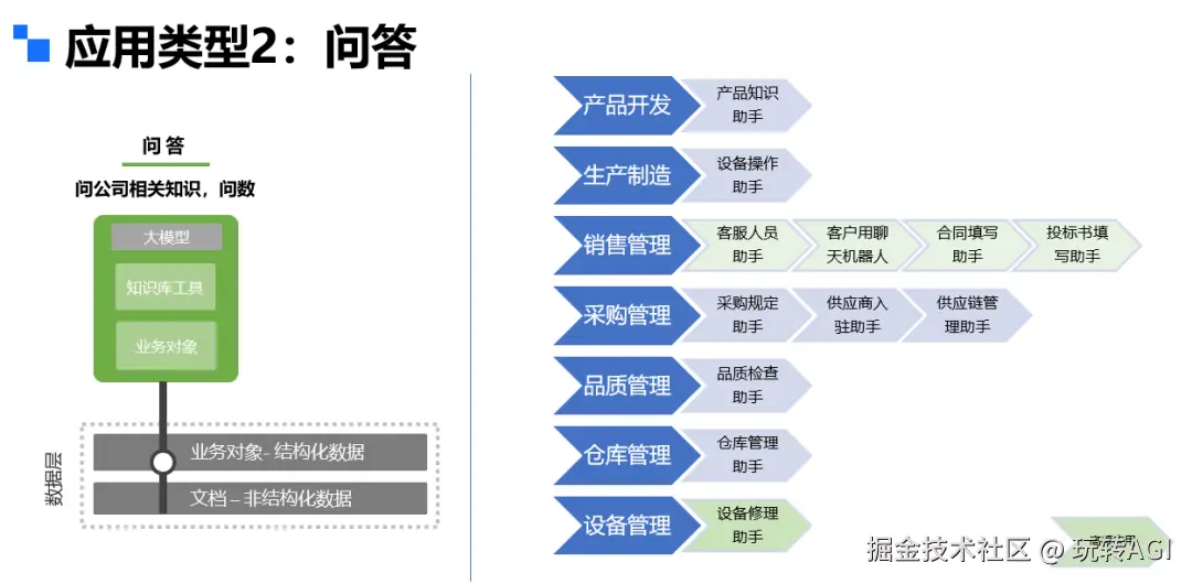 大模型的第二大企业应用类型主要聚焦于企业数据智能问答,其数据层整合了企业IT系统的结构化数据与非结构化文档资料。
