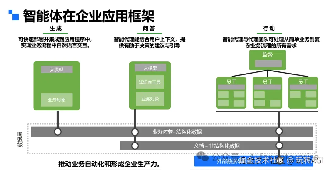 大模型在企业中的应用可以地划分为三大类型:内容生成、智能问答执行行动。【大模型教程】