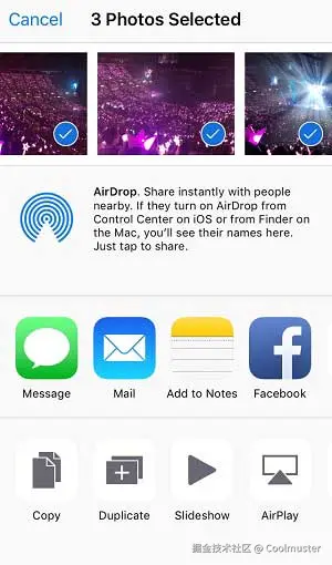 步骤4.点击“共享”按钮,选择“AirDrop”,找到您的Mac的名称,然后单击进行传输。