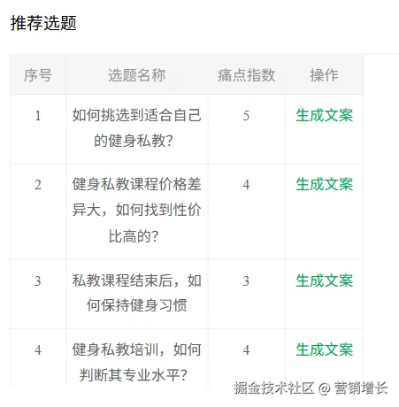 接下来我用它的 AI写作 模块, 输入关键词“私教课多少钱一节”, 系统立刻生成完整脚本: