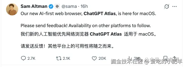 虽然OpenAI发布的Atlas浏览器,在功能上没有带来太多惊喜。