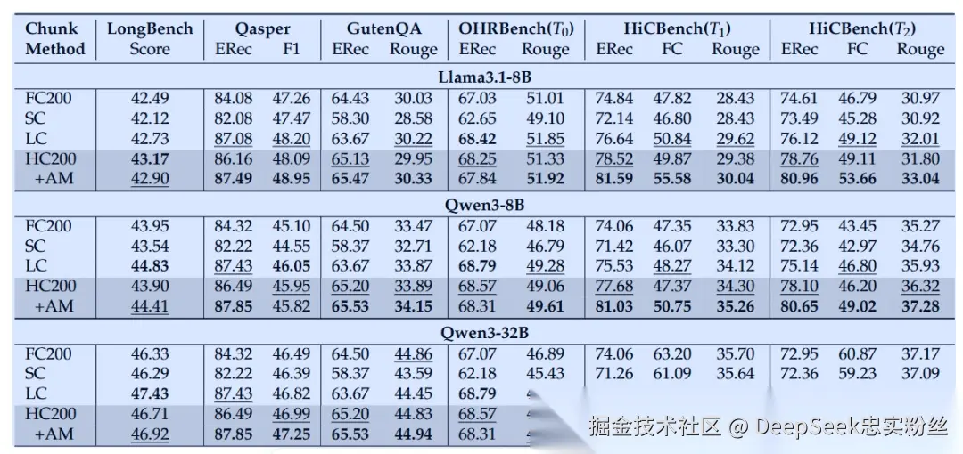 研究团队在 HiCBench 及多个公开基准上测试,HiChunk 框架表现亮眼: