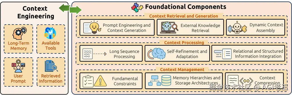 既然Context engineering是一个AI系统工程,那可以把它划分几个重要的组件如:系统级设计、动态信息管理、多模态上下文优化。