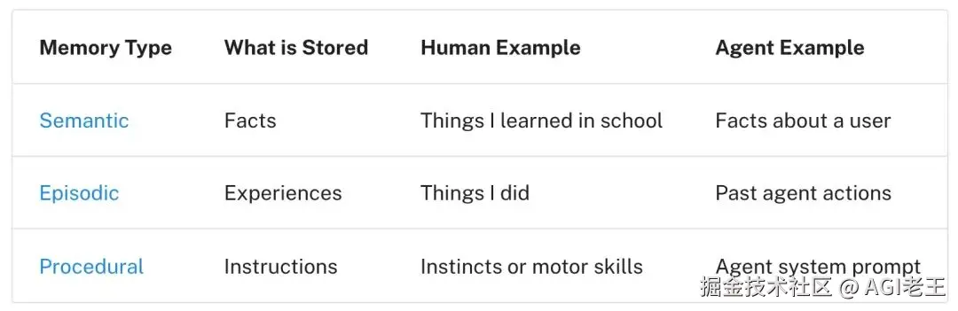 e) Long term memory: 这是应在会话(对话)中持续存在的信息,一般存在数据库中。