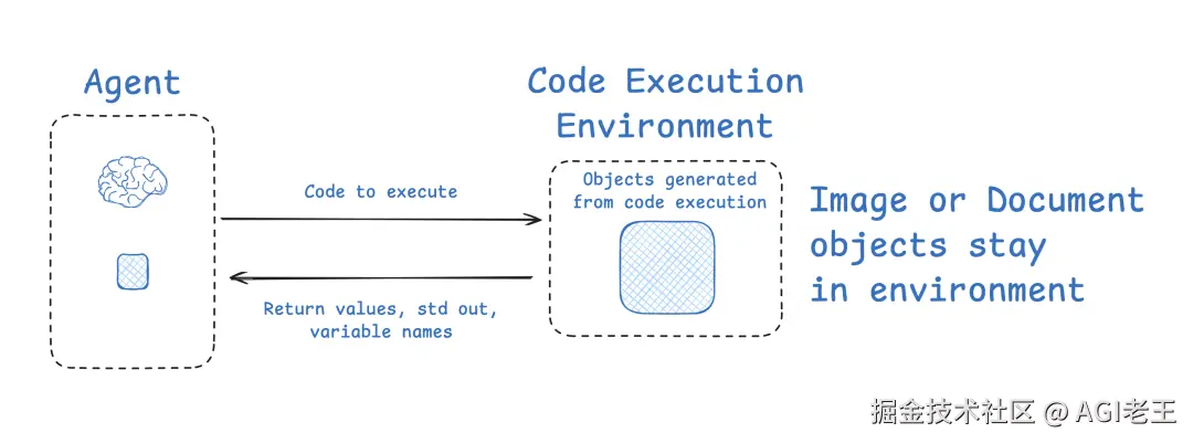 Huggingfacez自己也提供了一个Agent框架,采用的也是这种方式。因为大多数代理使用工具调用 API,它返回 JSON 对象(工具参数),这些对象可以传递给工具(例如搜索 API)以获取工具反馈(例如搜索结果)。HuggingFace 使用 CodeAgent,它输出包含所需工具调用的代码。然后,代码在沙盒中运行。然后从工具调用中选定的上下文(例如,返回值)被传递回 LLM。