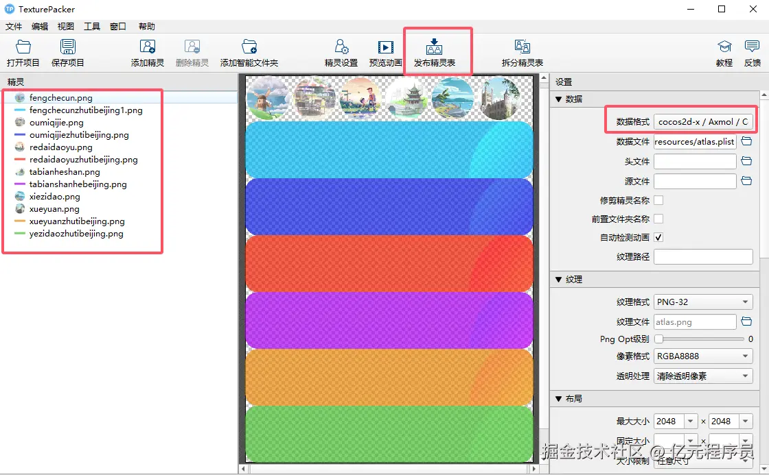 使用方式也比较简单,将散图拖进去,修改格式和路径,然后发布精灵集即可。