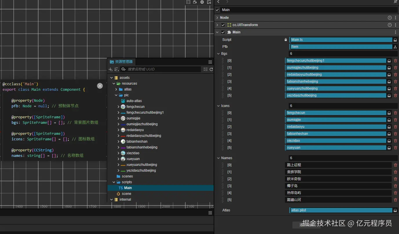 最后通过脚本绑定图集,并且更换为图集中的图片: