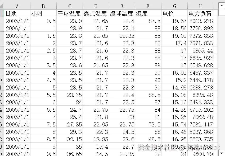 本研究使用2006-2011年温度、湿度、电价及电力负荷数据,原始数据87649条,筛选每日24小时整点数据后剩43824条。数据预处理流程包含清洗(异常值处理)、标准化(消除量纲)与特征拼接,下图为数据预处理关键步骤示意,确保输入模型的数据质量。