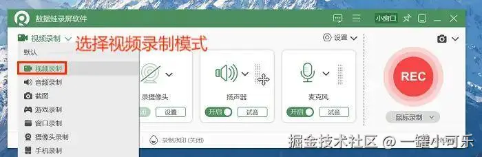 步骤1:下载并安装打开软件后,在主页面选择需要的录制模式,本文选择 “视频录制” 。