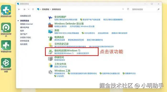 步骤2: 通过“系统与安全”,找到“备份与还原”功能单击进入。