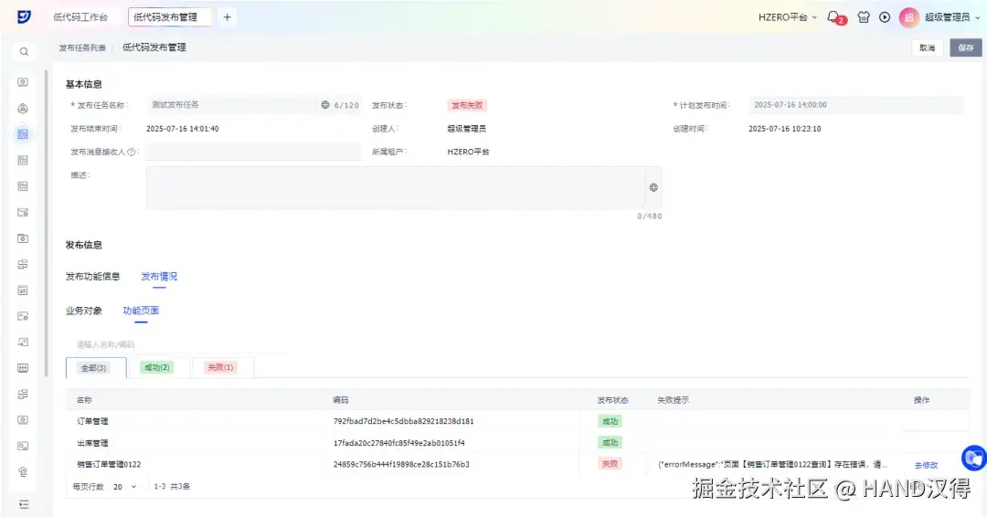 通过飞搭低代码发布管理功能,企业可以: