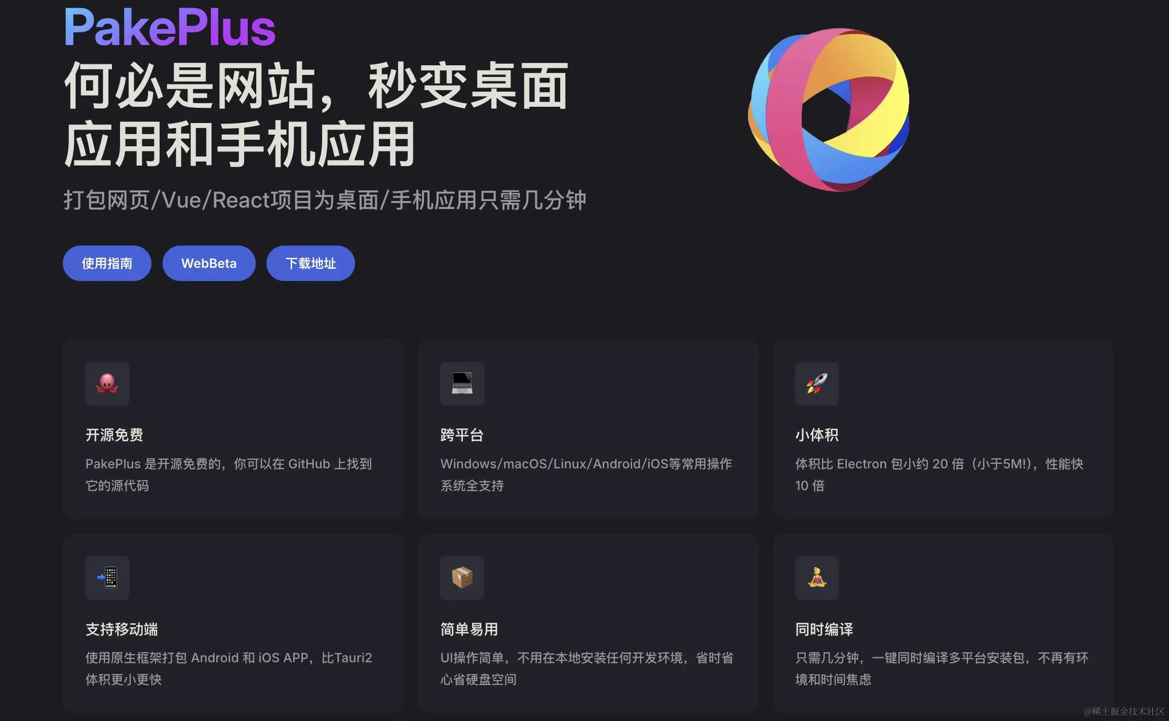 大家好,我的开源项目PakePlus可以将网页/Vue/React项目打包为桌面/手机应用并且小于5M只需几分钟,官网地址:pakeplus.com