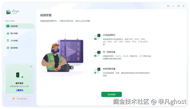 修复文件,点击 修复 按钮批量修复损坏的视频、照片或文件。