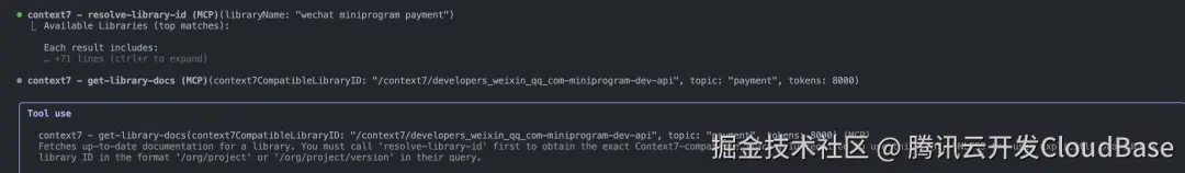 Context7 MCP 调用工具寻找了支付相关的API文档材料