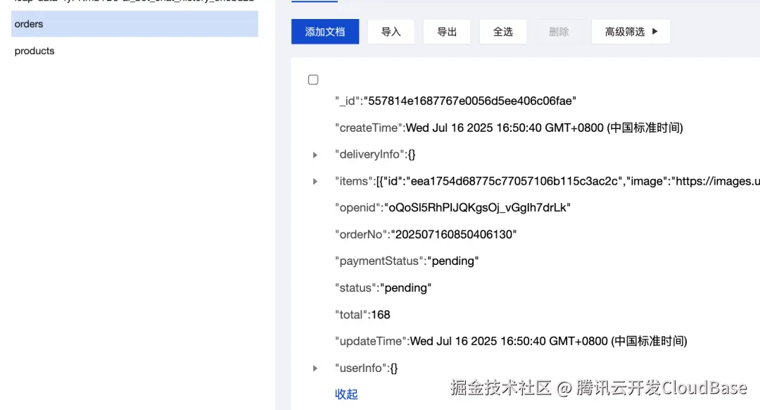 - 创建了 orders, products 两张表,用于存储订单和商品信息,关联的用户信息标识使用了 openid