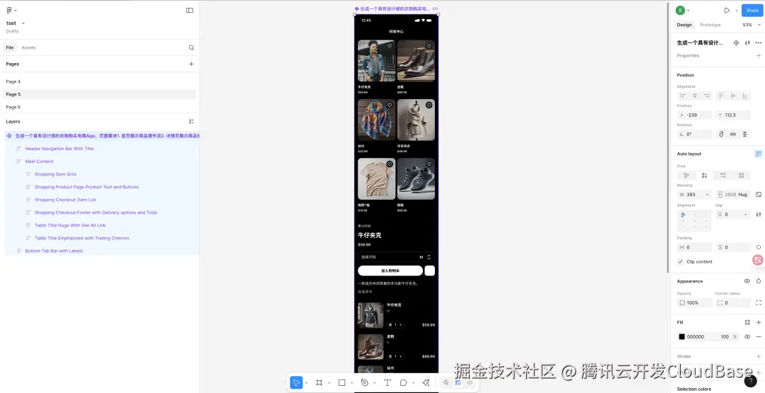 注意:这里 figma AI 会生成一张页面稿子,这张稿子里是将多个页面合并在一起了,但不影响 Claude Code 调用工具理解