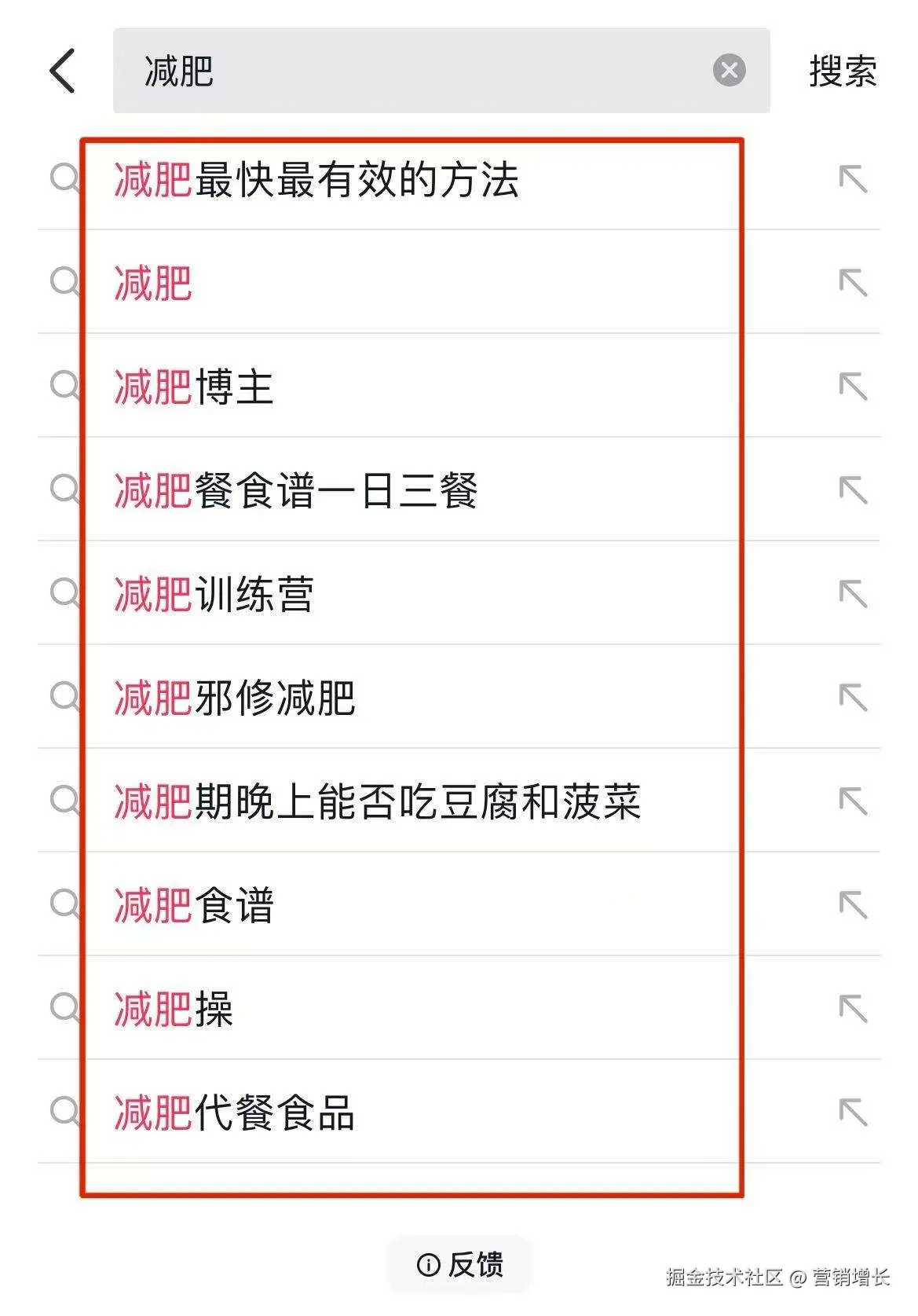 打开抖音搜索框,输入"减肥":