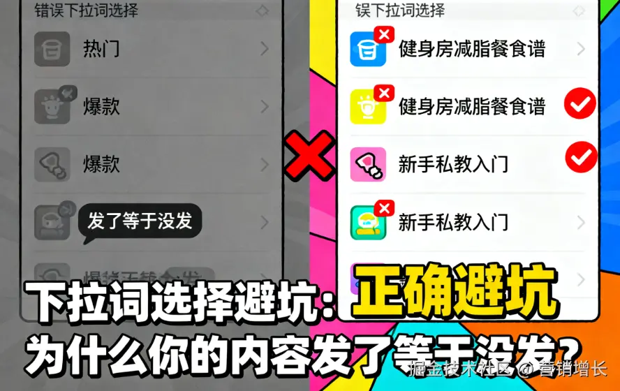 内容发了等于没发,不是内容不好,是下拉词选错了。