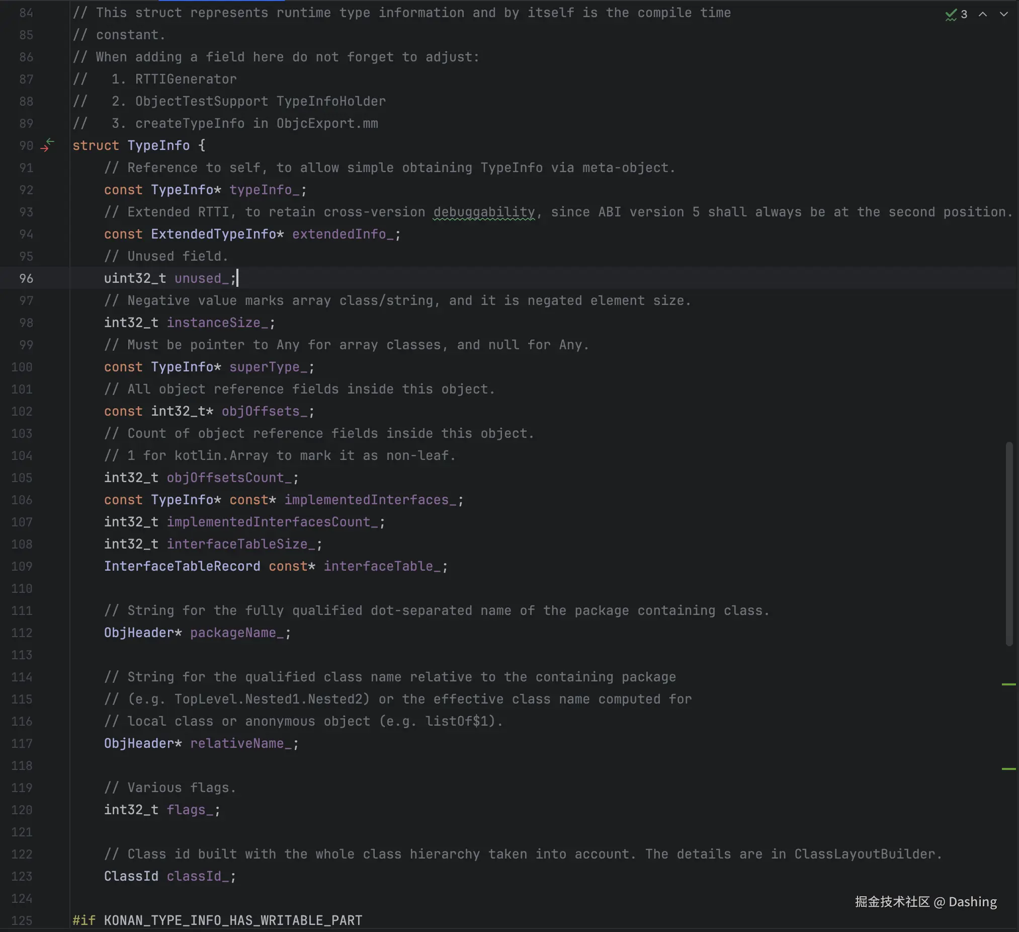 所有的Kotlin对象,都有一个成员叫 typeInfoOrMeta_,指向自己的类对象 (类比OC中的isa指针)