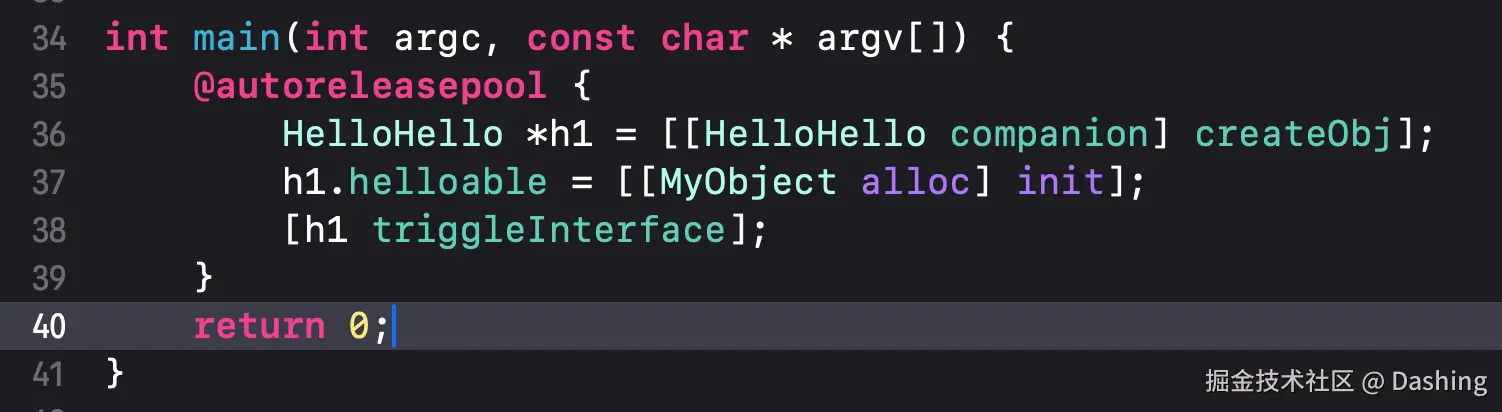 ○ 调用 h1 的 triggleInterface 方法,方法的实现是 objc2kotlin_kfun:Hello#triggleInterface(){}