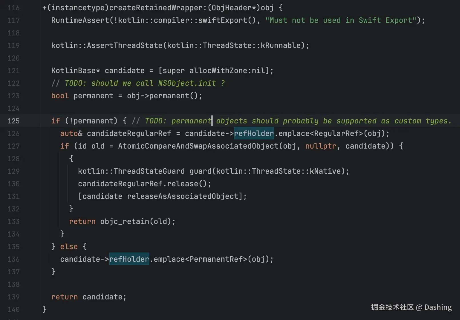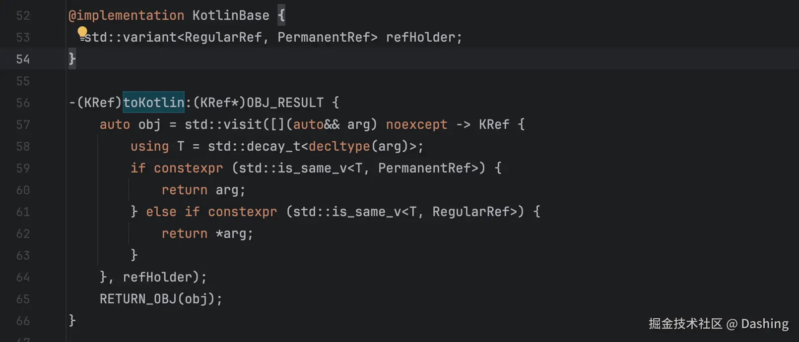 在toKotlin:中,返回值就是从refHolder中获取的,所以需要看下这个refHolder什么时候赋值的,其内容是什么?