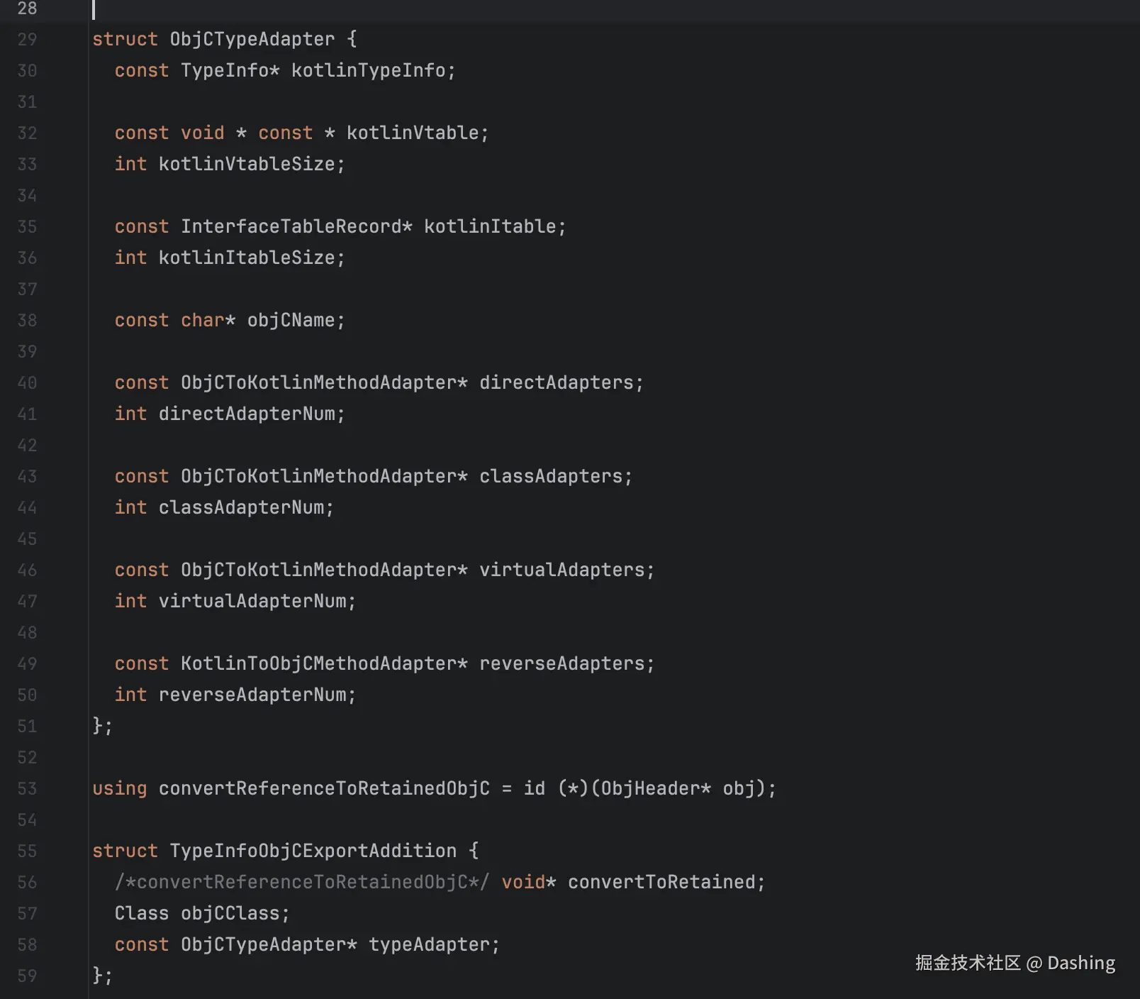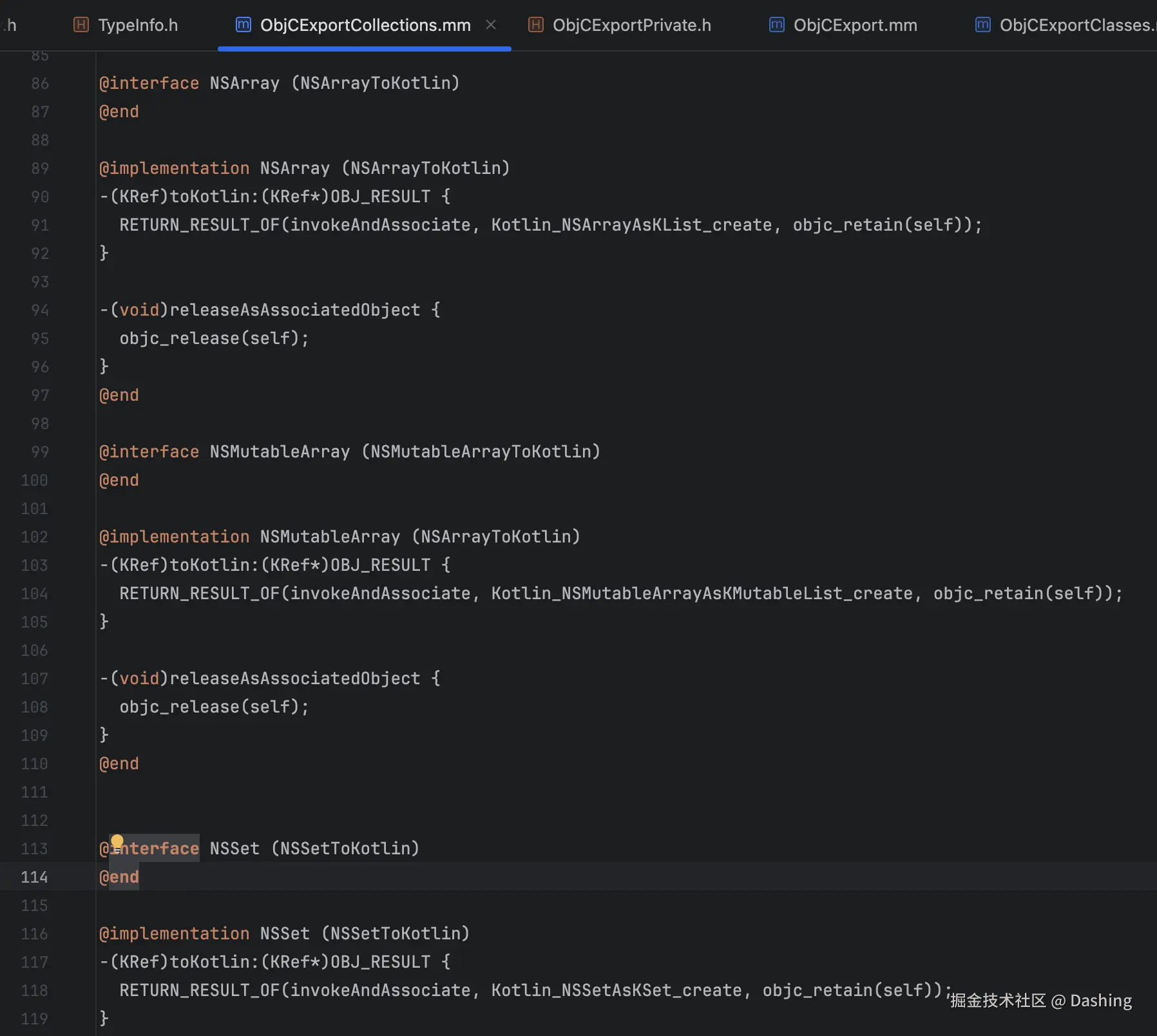 ● objc2kotlin_xx 与 kotlin2objc_xx 就存在这些列表里,runtime在运行时会根据类型匹配,动态绑定这些函数入口