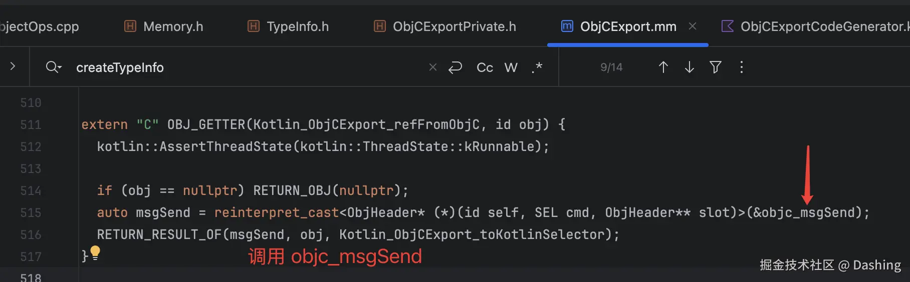 查看源码可知是调用objc_msgSend,target是obj,SEL 是toKotlin: