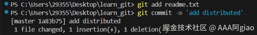 1. 在learn_git文件夹中添加并修改 readme.txt