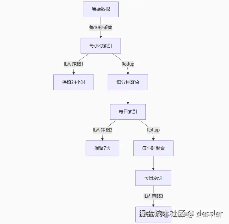 Elasticsearch 的 索引生命周期管理 (Index Lifecycle Management, ILM) 是自动化管理索引生命周期的核心功能,尤其适用于时序数据(如日志、指标)。它通过预定义的策略(Policy)自动控制索引从创建到删除的完整过程,大幅降低运维成本。下面我们用一个监控的案例来解释这个问题。