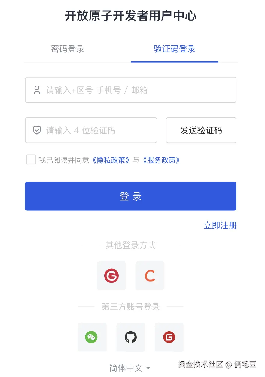 这时进入开放原子开发者中心,点击立即注册