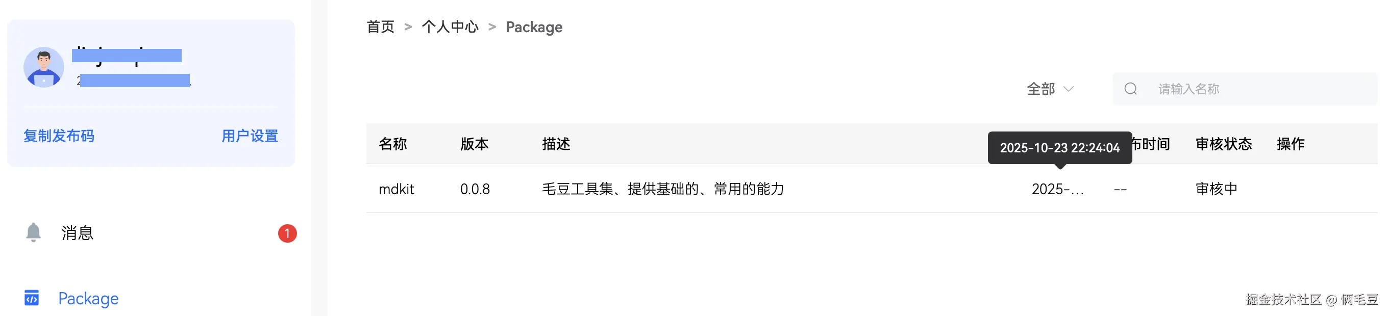 发布成功后,可以三方库中心仓查看,当前为审核中状态。