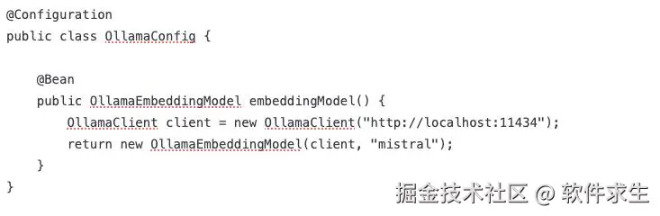 你可以在 Spring Boot 项目中,用和调用 OpenAI Embedding 一样的方式,创建自己的 OllamaEmbeddingModel。