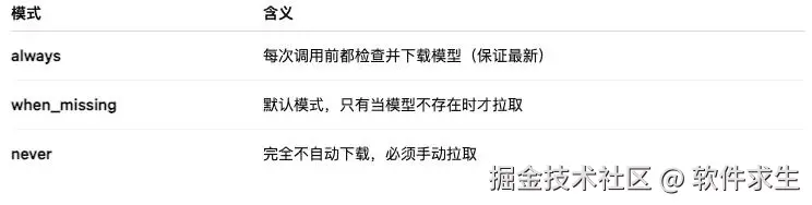 比如当你第一次调用某个模型,SpringAI 会自动帮你触发下载;后面再用,就不会重复拉取。