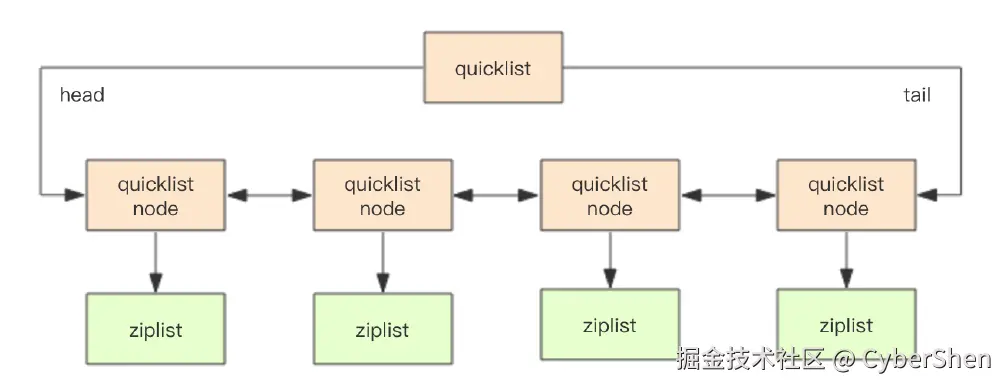 | REDIS_LIST | REDIS_ENCODING_ZIPLIST | 使用压缩列表实现的列表对象 | ziplist |