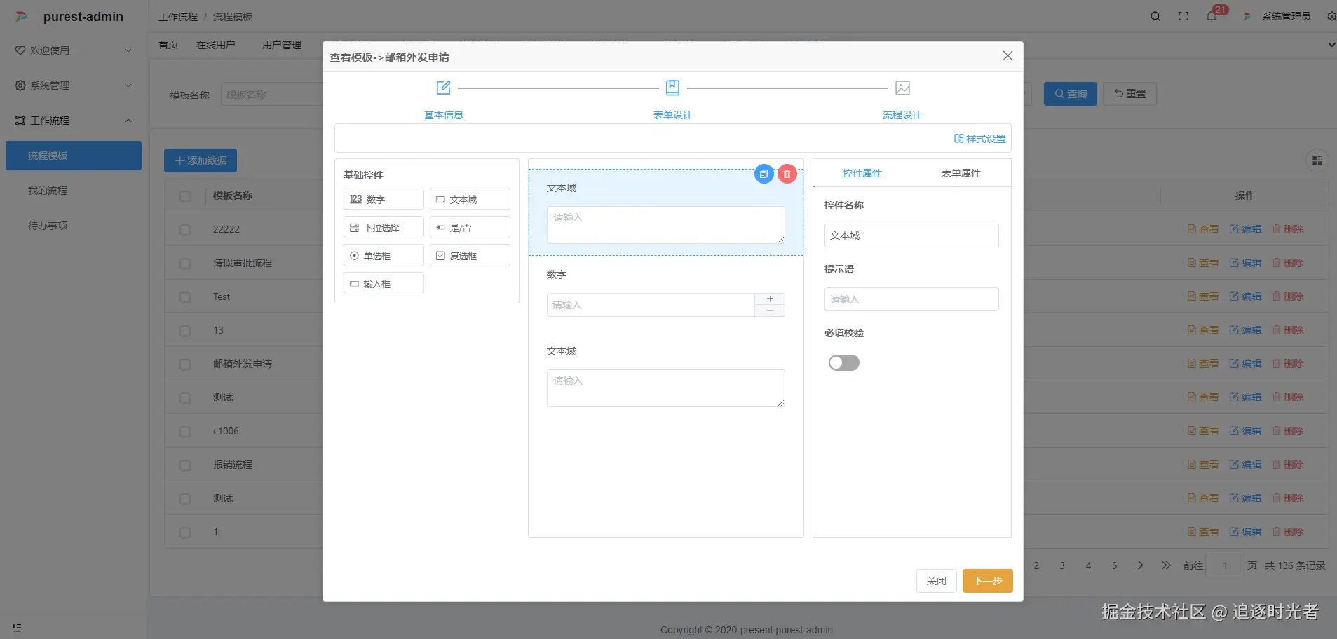 - 前端:Vue3、vue-pure-admin、vben-admin等。